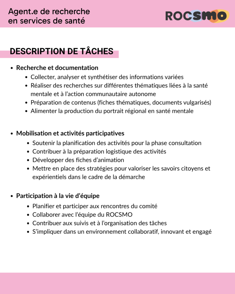 Si l’uns des postes t’intéresse, fais parvenir ton C.V à l’adresse suivante : direction@rocsmo.ca